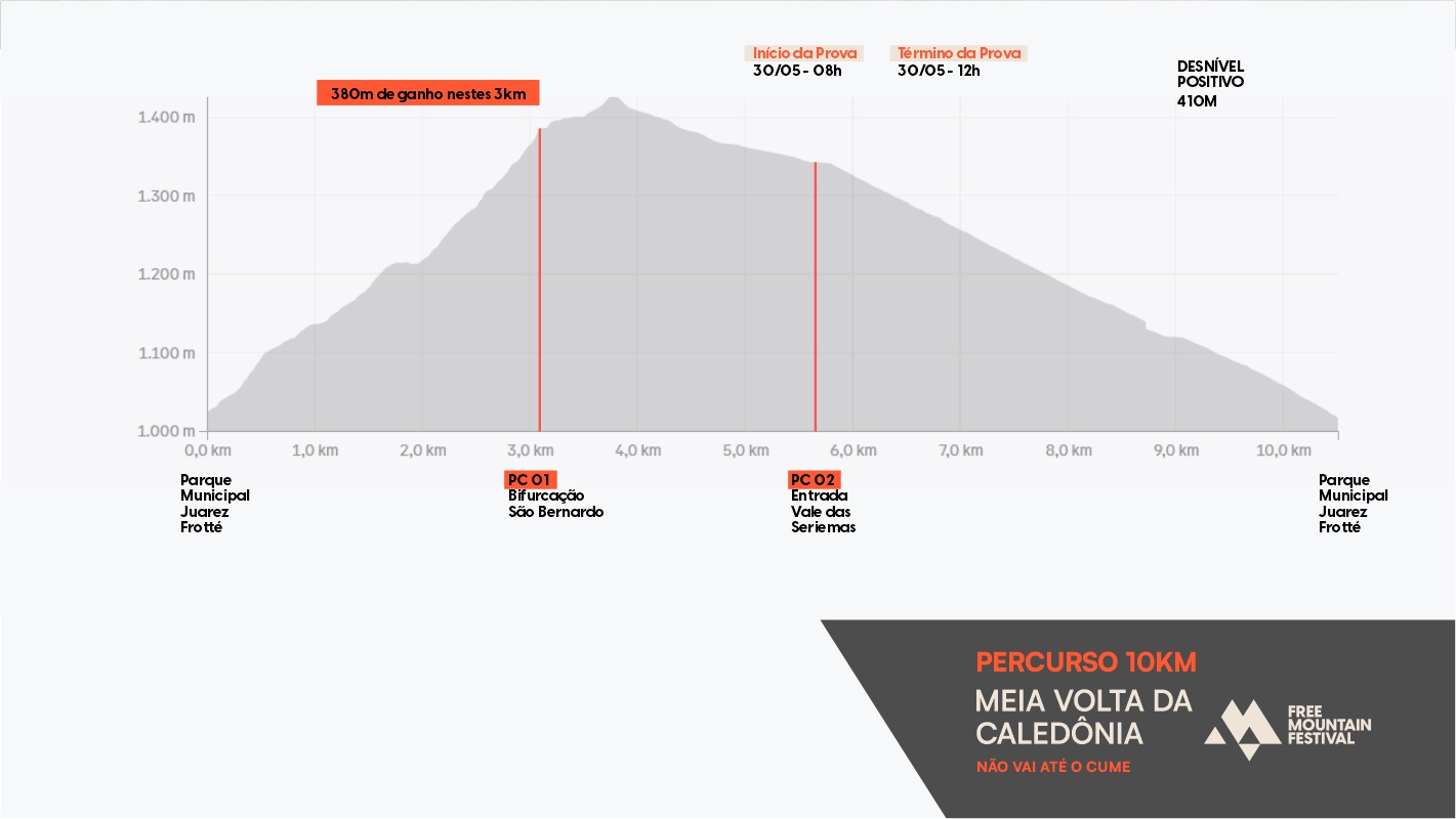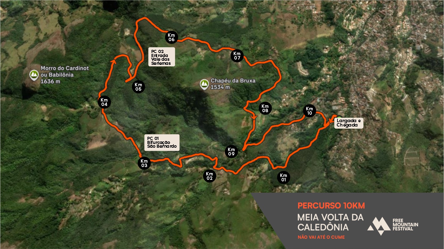 A corrida de 10km não vai até o cume da Caledônia, confira o percurso detalhado abaixo